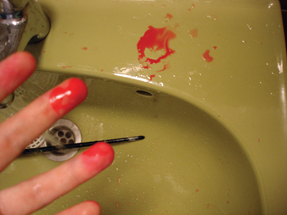 Deconstruction of initial expectations and prejudices: the shock because of blood turns via beauty (which is a phenomenon emerging from routinish activity), via touch (presence of hands), delicacy (handling of objects) into something light and funny.